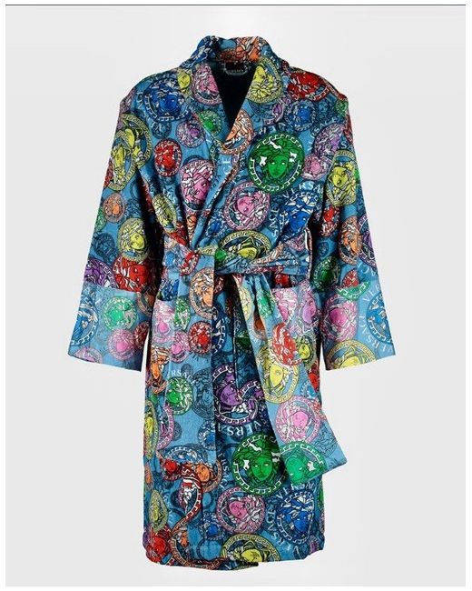 The Versace Multicoloured Bath Robe is a luxurious and authentic men's robe made from 100% cotton, perfect for the winter and spring seasons. With a belted design and long sleeves, it provides both comfort and style. Made in Italy by the renowned brand Versace, this robe is a high-quality addition to any man's wardrobe, representing the ultimate in sophistication and elegance.