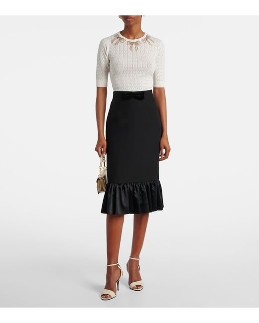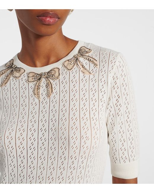 Materiale: 100% cotone. Trattamento: lavaggio a secco. Made in Italy. Colore del designer: Avorio. Colore dell'articolo: bianco. Ricamo: 100% poliestere. Collo: scollo rotondo. Maniche: a 3/4. Polsini: a coste. Orlo: a coste. Cotone.