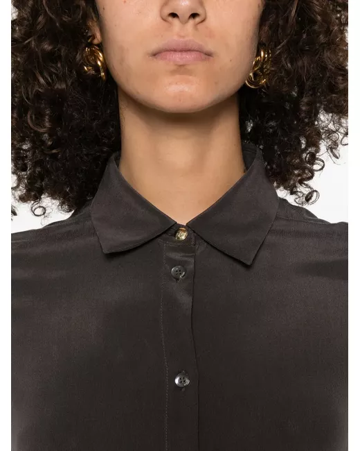 dark brown silk button fastening long sleeves classic collar straight hem