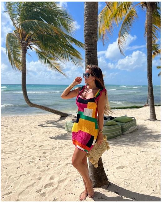 Limited Edition Multicoloured Patchwork Crochet Short Dress M da Women