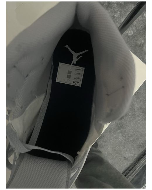 The Jordan 1 High in UK shoe size 9 is a women's trainer with a high top shoe shaft style and lace up closure. The white sneaker from the Air Jordan 1 model features a retro theme with the signature logo accents. Made from leather with a rubber outsole, it offers comfort and is designed for casual occasions, perfect for summer and basketball activities. This stylish shoe is a standard width and is part of the iconic Air Jordan product line.