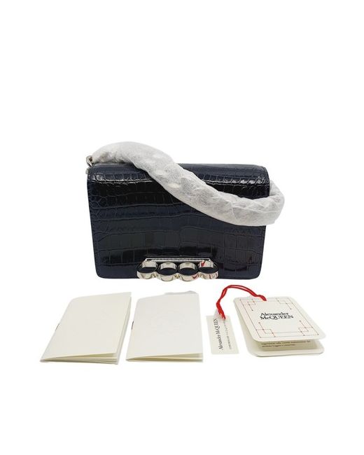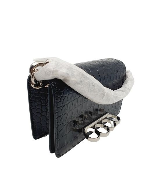 Alexander McQUEEN Black Croc Leather Mini Knuckle Ring Clutch Bag. Condition is New. Dispatched with Royal Mail Special Delivery. BRAND NEW/UNUSED WITH TAGS AND MAINTENANCE CARDS (NO BOX OR DUSTBAG) 100% AUTHENTIC - BUY WITH CONFIDENCE DIMENSIONS APPROX. 18CM W X 12CM L X 5CM D