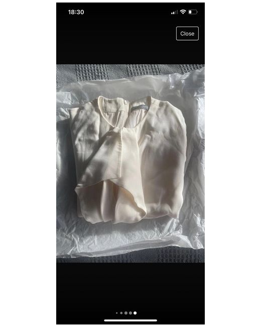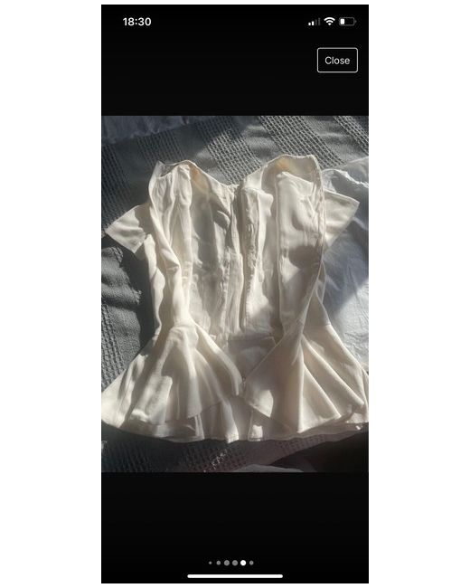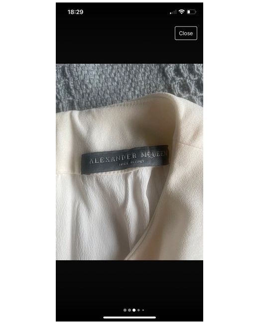 Alexander McQueen white/cream coloured peplum top with ruffle down the front. This is quite a rare item now and has never been worn. The top has been stored in tissue paper and will be steam cleaned before being shipped. For anyone who collects Alexander McQueen clothing this is one for you. It is very small I would say a size Uk 6. But is in excellent condition as has never been worn. Fabric is crepe with 25%silk lining.