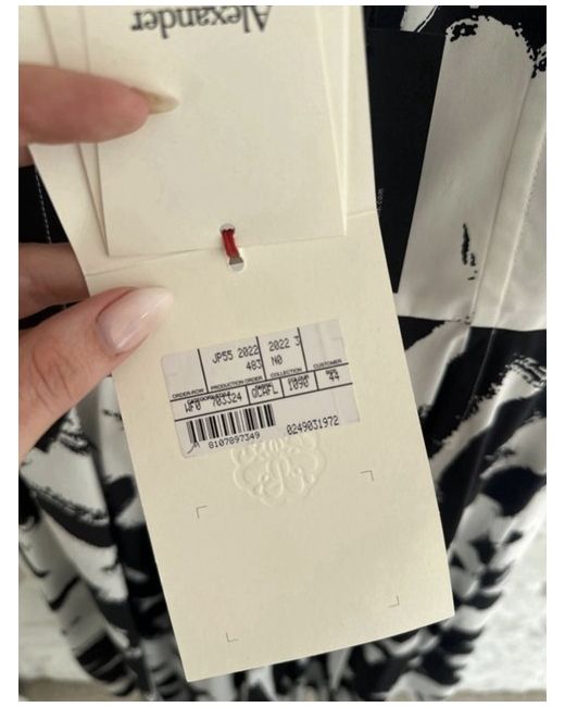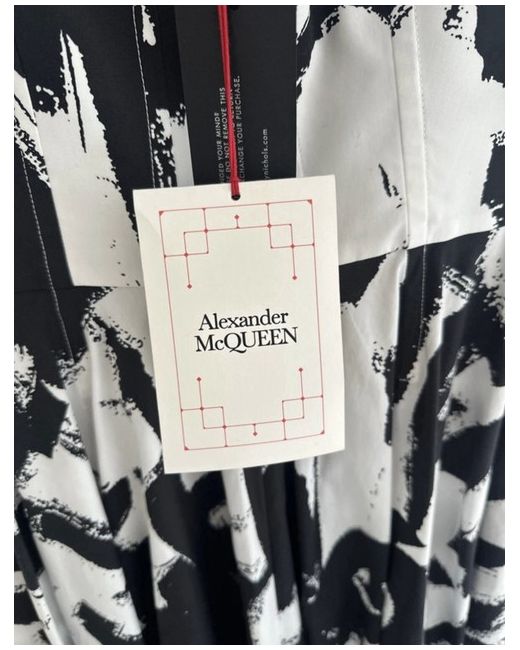 Never worn, much to my regret. Stunning Alexander McQueen mid length dress with graphic print. Bought last year. Flattering to the figure with pockets!