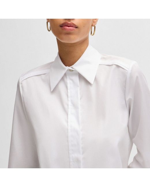 A refined blouse by BOSS. Who are we?. On-trend, Off-price. Stylish, a no brainer! It all began in 2009. We started with a range of 300 product lines, which soon grew to 4,000. And we're still growing, so watch this space!