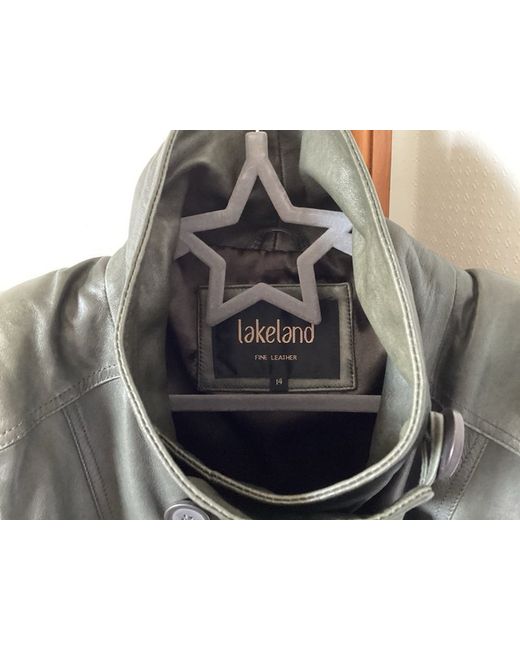 Beautiful soft leather Lakeland jacket size 14. Although leather very soft it is also not fine but quite firm. Very stylish quality jacket. Attached belt. Collar can be left open or buttoned higher giving different effect.