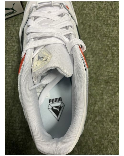 The Puma Forever Diamond E trainers in size 9.5 UK are a stylish and versatile option for men looking for a fashionable and athletic sneaker. With the iconic Puma branding and a sleek white colour, these trainers are perfect for casual wear or sports activities. The Puma Forever Diamond E line combines quality craftsmanship with a comfortable fit, making them a popular choice for those looking for a reliable and trendy shoe option.