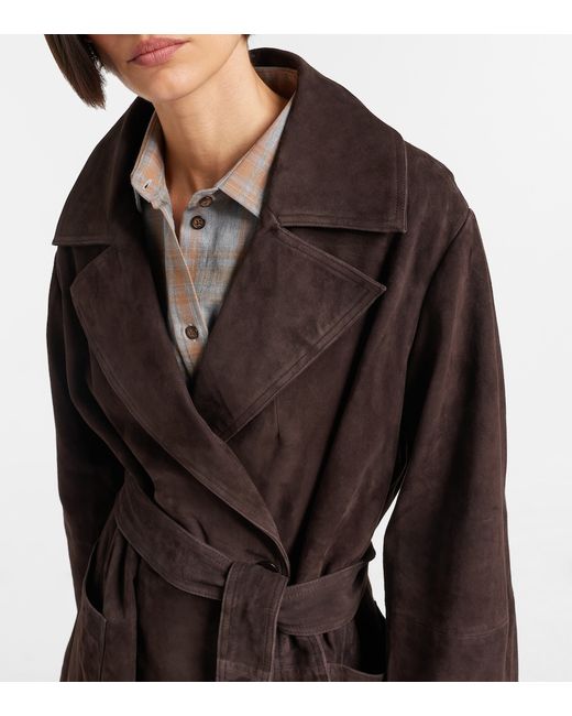 Materiale: 100% pelle di capra (suede). Trattamento: lavaggio professionale. Made in India. Colore del designer: Dark Chocolate. Colore dell'articolo: marrone. Fodera: 100% viscosa. Chiusura: chiusura doppiopetto (con sei bottoni). Tasche: tasche applicate. Passanti per cintura. Cintura rimovibile. Spacco: singolo. Pelle.