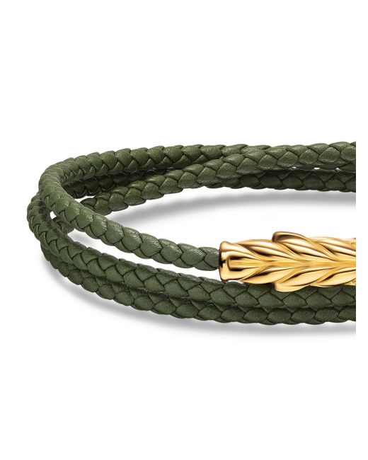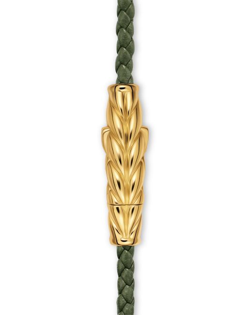 Marked by its double-helix pattern, Chevron is a mirror image of Cable, the house's signature motif. The ancient V-shaped design offers a sense of modern sophistication, expertly crafted in refined materials, with deep cuts, precise angles, and a play of light and dark to evoke a feeling of forward momentum in the pursuit of excellence. Its elevated look fuses luxury and practicality for everyday wear, imbuing an essence of timelessness and versatility. 18-karat yellow gold Black leather Bracelet, 3mm Chevron station, 24.5 x 7mm Push clasp Imported ABOUT THE BRAND David, a sculptor, and his wife, Sybil, a painter, launched their innovative jewelry brand in 1980 in New York City. Since then, the American design house has pioneered cutting-edge collections-from its iconic combination of sterling silver and diamonds to signature pinky rings. Today, with their son Evan, the Yurmans continue to deliver timeless pieces inspired by nature, art, ancient symbols and Manhattan's stunning architecture. Lsd Jewelry - David Yurman > David Yurman > Saks Fifth Avenue > Barneys. David Yurman. Color: Green. Size: Medium.