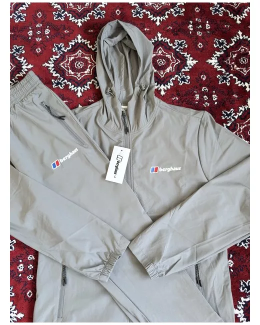 The Berghaus Men's Tracksuit in grey is a stylish and functional 2-piece set that includes track pants, perfect for activewear. The long sleeve tracksuit features a zip closure and is machine washable for easy care. Made with a regular fit and tapered leg style, this tracksuit is suitable for walking in autumn, winter, spring, and summer. The classic grey colour and logo accents add a touch of branding to this high-quality Berghaus tracksuit, designed for the modern man on the go. Made in Indonesia, this tracksuit is a versatile and durable choice for outdoor activities.