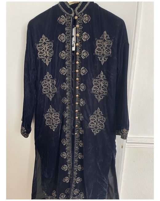 This BNWT beautiful Zara kimono-style jacket in navy blue is a must-have for any fashion-forward woman. Made with luxurious velvet outer shell material and embellished with beautiful embroidery on the front, collar, hemline and sleeves, this jacket is perfect for any occasion. The generous XS size and regular fit (I am a medium frame) make it a great addition to any wardrobe. The jacket is brand new with tags and has never been worn, ensuring that you'll be the first to show off this stunning piece. Ideal for any season, this jacket is sure to turn heads. Length shoulder to hem is approximately 42 inches.