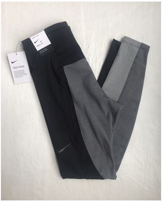 Nike Tech Pack Leggings, Size S. Nike's 'Tech Pack 2.0' leggings are made from stretchy fabric that's paneled with graphic stripes. Cut for a tight fit, they have a supportive wide waistband and a discreet zipped pocket for your keys or phone. Wear them with a pair of the brand's 'Flyknit' sneakers' on your morning run. Condition is Brand New with Tags.