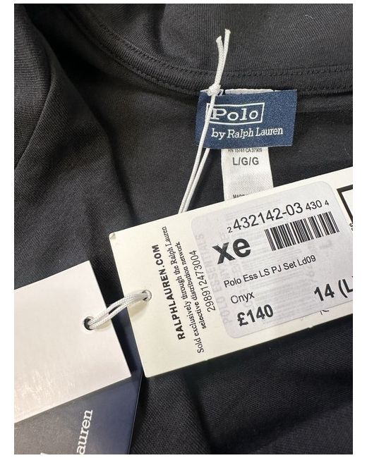 This Polo Ralph Lauren organic cotton long sleeve pyjama set in size large for women features a classic solid black colour with the brand's signature logo accents. The set includes a collared neck with a button closure, making it both stylish and comfortable for a good night's sleep. Made from organic cotton, this pyjama set is perfect for all seasons and embodies a timeless yet contemporary style.