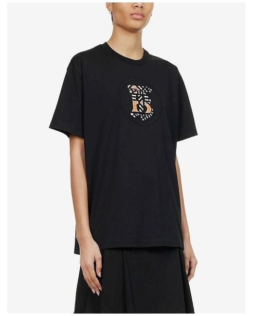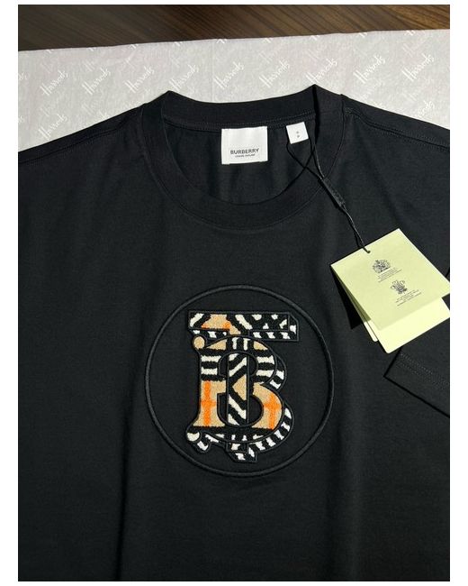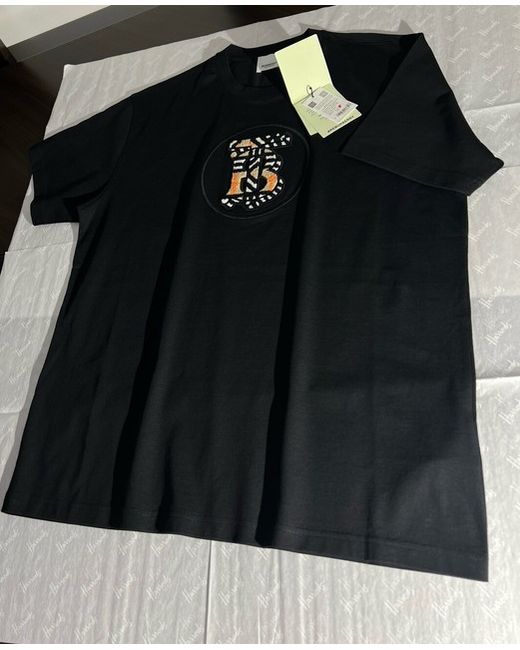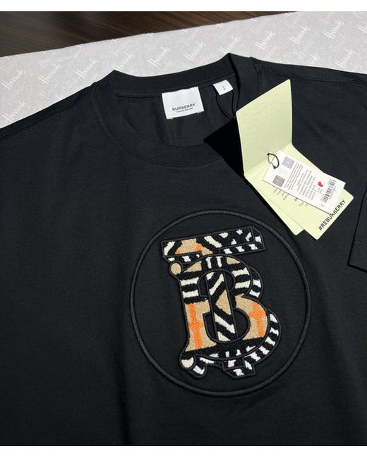 Burberry Black Oversized Carrick Monogram T-Shirt. Sleeves Length 20 cm. Back Length 70 cm.