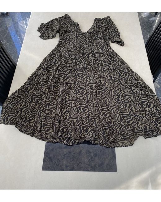 Ganni Abstract-Print Viscose-Crepe Midi Dress. Condition is New with tags. Dispatched with Royal Mail 1st Class. Made from lightweight fabric. Material: 100% viscose. Lined. Slip on dress. Cut for an A-line silhouette. V-neckline. V-shaped back. Elbow length balloon sleeves with elasticated cuffs. Thank you for looking.