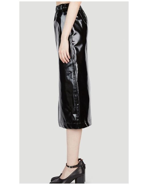 Made from mid-weight fabric with a glossy coated finish. Material: 1: 98% cotton/2% elastane. Material 2: 100% polyurethane. High front slit. Elasticated waist. Side slip pockets. Thank you for looking.