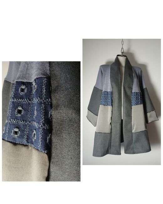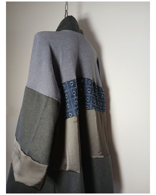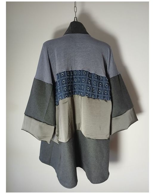 Handcrafted from a rich blend of luxury denim, viscose, fine wool, and soft angora knit. Unstructured duster silhouette with relaxed drape for effortless layering. Features deep kimono-style cuffs in lustrous viscose for a subtle sheen and contrast.