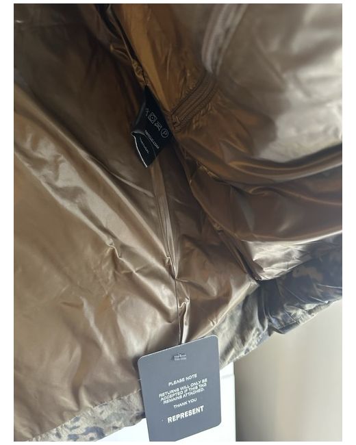 This is a new XL beige Represent puffer gillet for men adults. Made of nylon, this regular-sized jacket features the brand's signature style for a fashionable look.