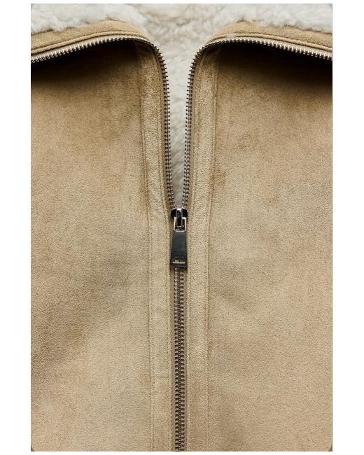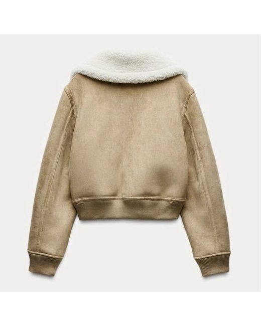 ZARA DOUBLE-FACED JACKET WITH RIBBED TRIMS ❤️ Collared jacket featuring long sleeves with cuffed hems. Double welt pockets at the front. Featuring a faux shearling lining. Zip-up front. Ribbed trims. This product has a smaller fit than usual. camel | 6318/268/704 COMPOSITION: OUTER SHELL 100% polyester LINING 100% polyester