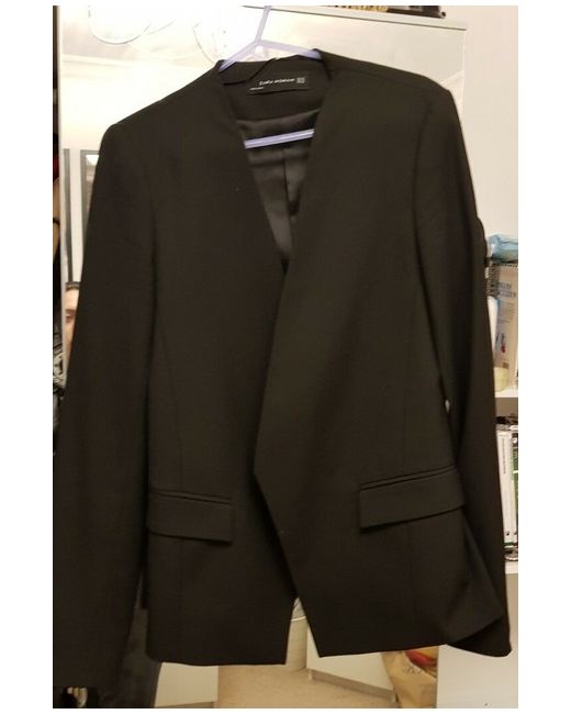 This Zara black collarless blazer is perfect for any fashion-forward woman. Made of a cotton blend, this short jacket is both comfortable and stylish. The XS size is designed for a regular fit and the blazer has a unique overcoat style, making it a versatile addition to any wardrobe. The collarless design and black colour of the blazer make it easy to dress up or down for any occasion. The blazer includes features such as a collarless neckline and is part of the Coats, Jackets & Waistcoats category. With its high-quality design and unique features, this blazer is a must-have for anyone looking to enhance their fashion sense.