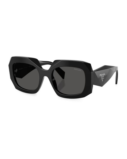 Prada's B23s sunglasses feature a square frame with dark grey lenses. Signature logos decorate the arms for a luxury finish. 100% UV protection Solid lens Square frame Case and cloth included Acetate frame Standard plastic lens Made in Italy SIZE 54mm lens width 20mm bridge width 145mm temple length. Soft Accessories - Sunglasses > Prada > Saks Fifth Avenue > Barneys. Prada. Color: Black.
