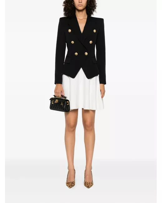 black double-breasted gold-tone buttons peak lapel long sleeves