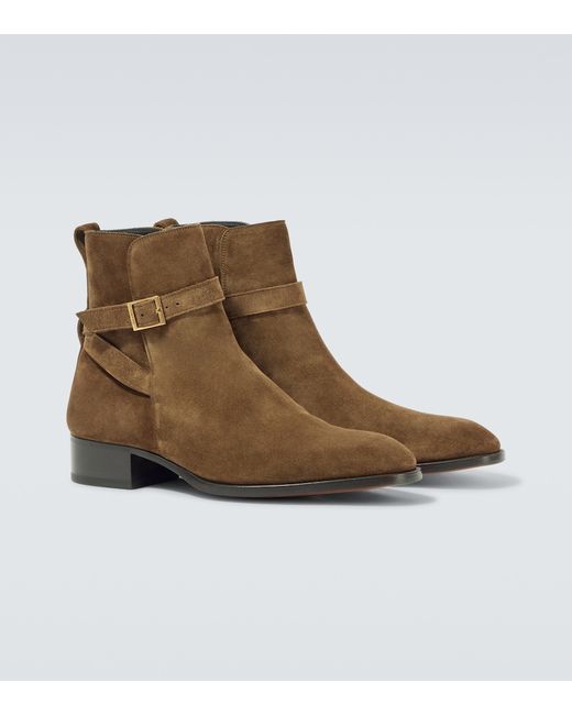 Tomaia: pelle di vitello (suede). Rivestimento: pelle di vitello. Suola: soletta in pelle, suola in cuoio. Punta: punta tonda. Made in Italy. Include: scatola per scarpe, sacca protettiva. Colore del designer: Walnut. Colore dell'articolo: marrone. Dettagli: ottone. Colore del metallo: oro. Chiusura: cinturino con fibbia metallica.