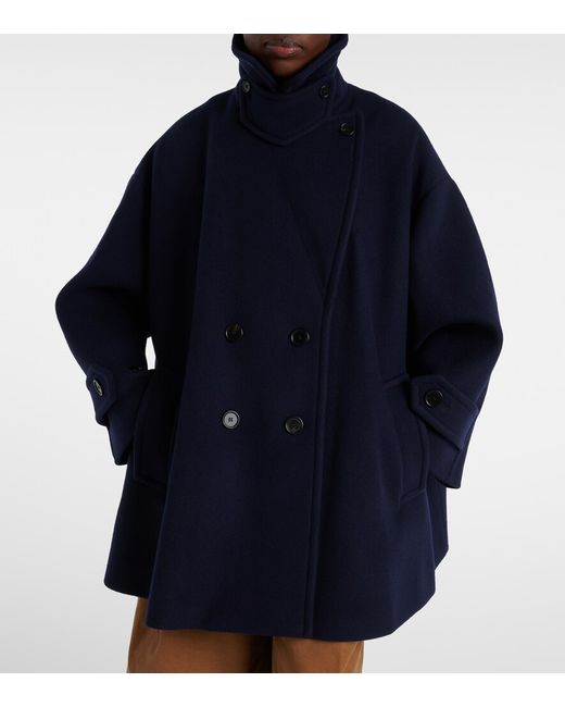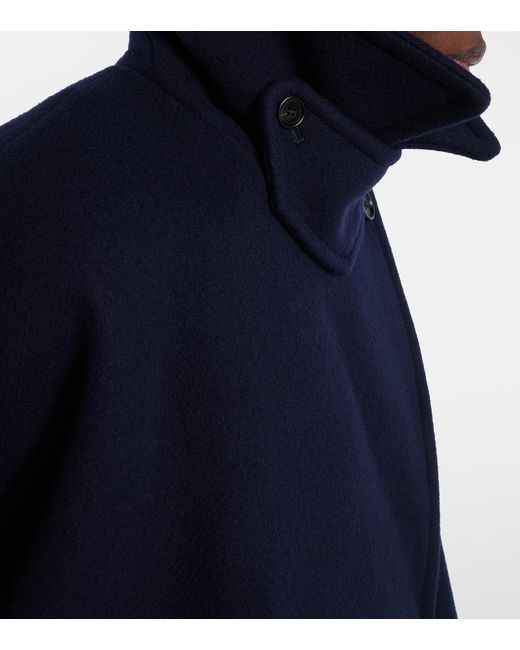 Material: 80% wool, 20% polyamide. Care instructions: dry clean. Made in Slovakia. Designer color name: Evening Blue. Item color: blue. Lining: 62% viscose, 38% cotton. Details: 100% water-buffalo horn. Fully lined. Closure: double-breasted (four buttons). Pockets: side slit pockets. Cuff: tab cuff, buttoned. Wool.