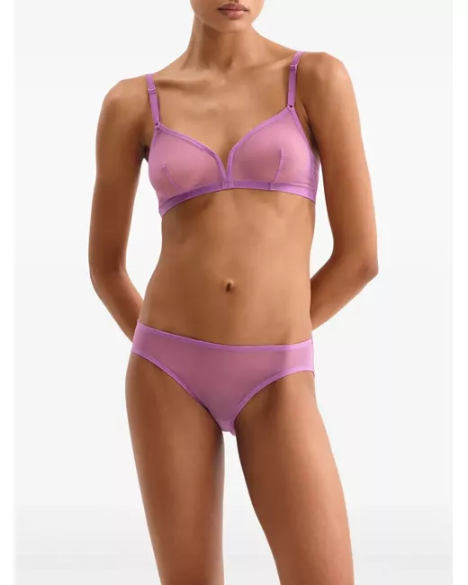 purple sheer mesh triangle cups adjustable straps V-shaped neckline hook-and-eye closure