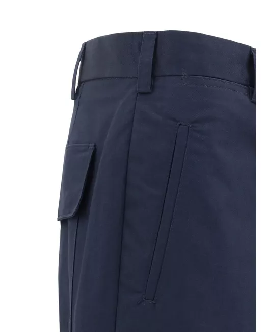 blu navy patta con bottoni tasche a filetto tasche oblique laterali passanti per cintura orli con risvolto