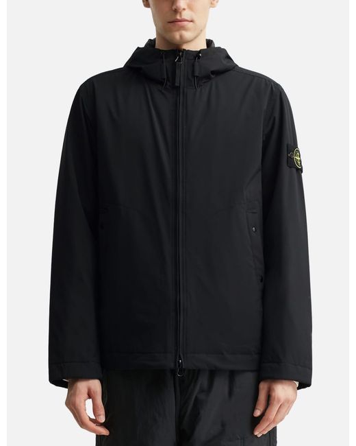 Stone IslandSoft Shell-R Padded JacketMade with 3-ply performance material8000 MM water columnBreathable, waterproof and windproofFlexibility and comfort100% recycled polyester stretch canvas outerE.dye® Waterless Color System™ technologyPadded PrimaLoft® Gold P.U.R.E™Highest warmth-to-weight ratio of all synthetic insulationsTreated with an anti-drop agentHood with visor and contour drawstring with neck tunnelTwo slanted hand pockets with two snaps and stitched outlineInner pocket with compass logo embroidery and buttonLogo badge on left sleeveTightening snap button at cuffsDrawstring at hemHidden two-way zip fasteningColor: Black