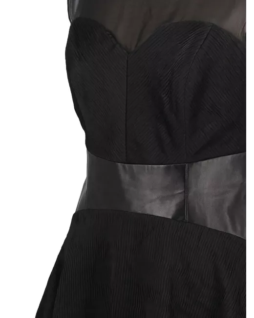 nero dettaglio in pelle sintetica sulla vita scollo in tulle gonna plissettata maniche ad aletta