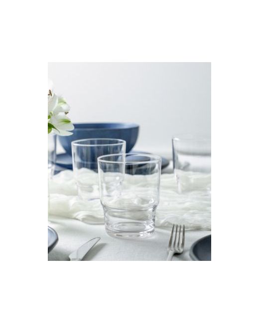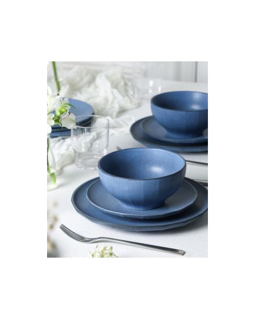 Infuse your dining space with edge and elegance with the Stone Lain Rio 32-Piece Stoneware Dinnerware Set in black. This collection is defined by its bold color palette, architectural fluted detailing, and rich glass accents-all carefully crafted to elevate the everyday.