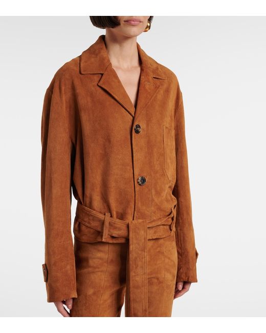 Material: 100% lamb leather (suede). Care instructions: specialist clean. Made in Portugal. Designer color name: Coyotte. Item color: beige. Lining: 97% cotton, 2.4% lyocell, 0.6% elastane. Pockets: angled chest pocket, internal pocket. Closure: buttoned front. Cuff: buttoned. Attached belt. Includes: dust bag. Leather.