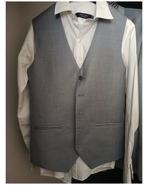 Look sharp and sophisticated with this four-piece suit that is perfect for any occasion. The jacket and coat are made of a combination of polyester and acrylic materials, while the lining is made of polyester. The suit comes in a light blue or grey colour, with a regular fit and a waist size of 32 inches. This suit is perfect for weddings, parties, cocktail events, or even casual business meetings. The suit includes a tuxedo style jacket with a notched lapel, and is available in size M. The suit is perfect for men who want to look their best, and is sure to make a statement wherever you go.
