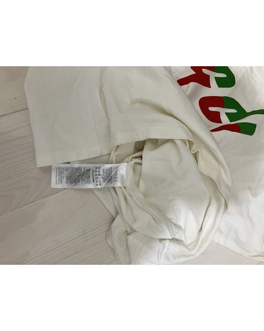 Gucci T-shirt featuring a bold, modern red-and-green distorted logo design—a more recent style that caters to streetwear enthusiasts. In great condition