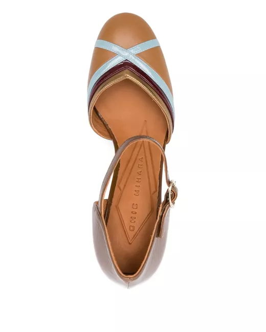 marrone pelle di vitello tacco largo cinturino alla caviglia chiusura con fibbia design color-block