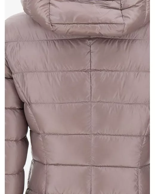 light lilac quilted design two-way zip closure removable hood elastic drawstring hood goose down padding