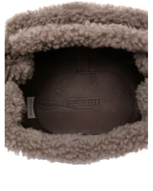 brown calf suede leather shearling trim knotted shoulder strap gathered detailing