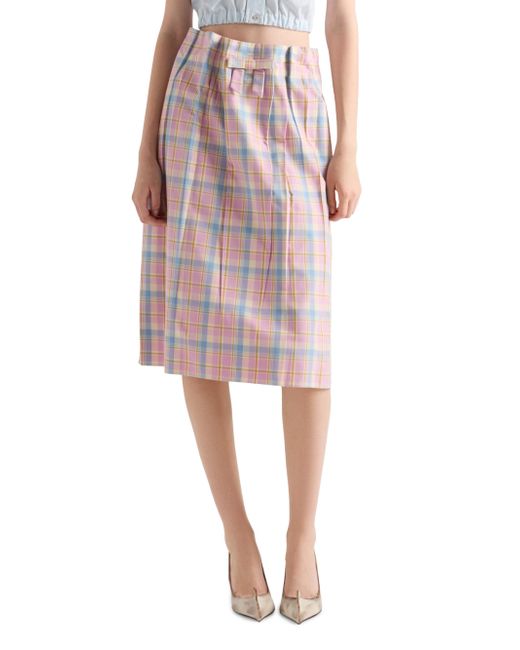 Checked Cotton Midi Skirt. Loose fit Lined garment Side closure with hook and zipper Side pockets Bow detail Made in Italy 100% Cotton. Lsd Rtw - Prada Rtw > Prada > Saks Fifth Avenue. Prada. Color: Pink. Size: 2.