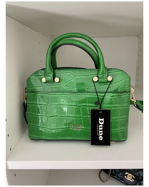 The Dune Croc Effect Mini Bag is a stylish shoulder bag designed for casual occasions. Made from faux leather in an anemone green colour with a crocodile pattern, this mini bag features a green handle/strap and gold hardware. The Dune brand ensures quality and sophistication, making it the perfect accessory for any woman looking to add a touch of elegance to her outfit.