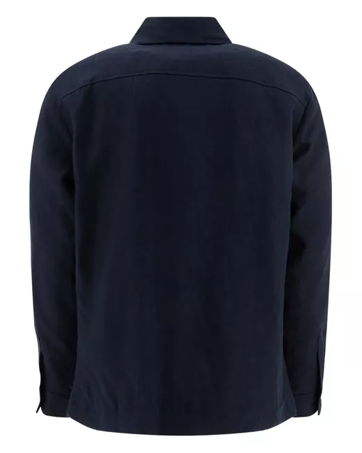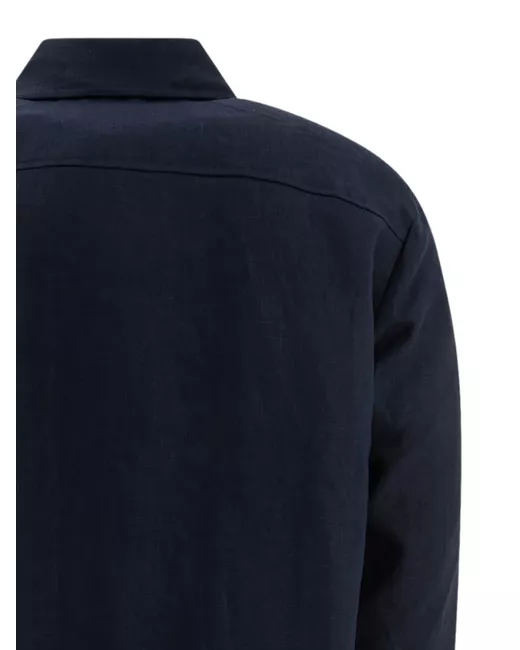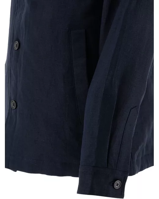 navy lino chiusura a bottoni tasca applicata maniche lunghe orlo dritto