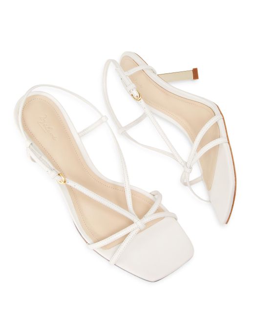 These T-strap sandals from 22 élevé are crafted of leather and styled with a metal heel. Open toe Buckle closure Leather upper Leather lining Cushioned insole Leather sole Imported SIZE Heel: about 3" (75mm). Women's Shoes - Designer Classics > 22élevé > Saks Fifth Avenue. 22élevé. Color: Cloud. Size: 5.