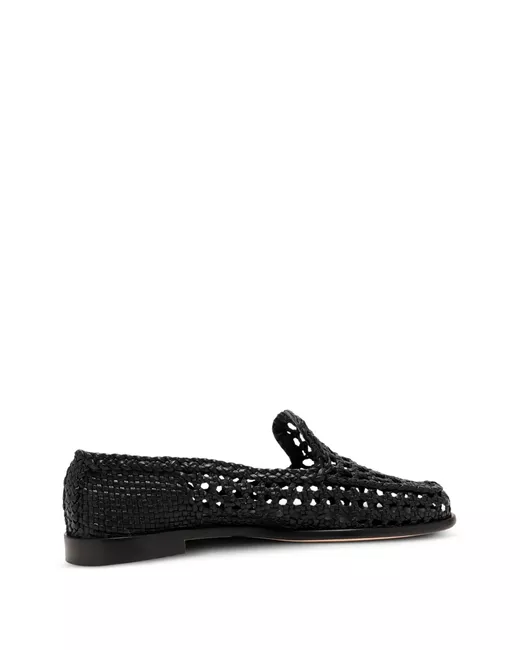 black woven leather slip-on style flat sole openwork pattern pointed toe