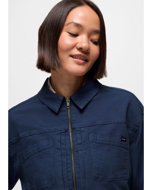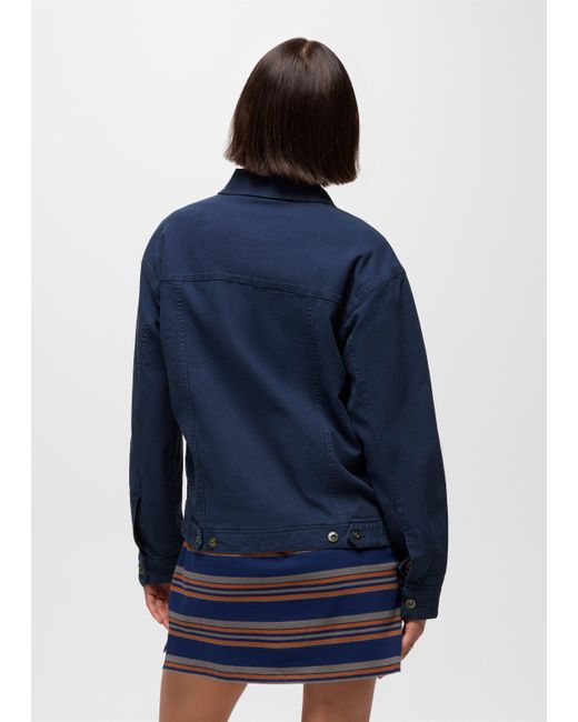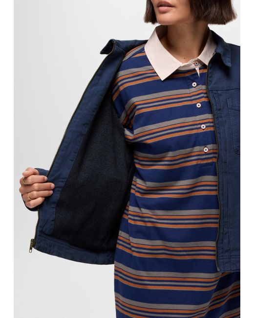 Workwear-inspired style in a standard-fit canvas jacket with soft flannel lining and washed down effect. Embrace cool-weather walks and daily commutes with the Rock Ridge Jacket. Inspired by traditional workwear, this standard-fit zip-up jacket is made with a stretch canvas from organic and recycled cotton. It features two chest pockets, two hand pockets, and a flannel-lined body and taffeta-lined sleeves for elevated comfort. | Womens prAna Rock Ridge Jacket in , Size Large