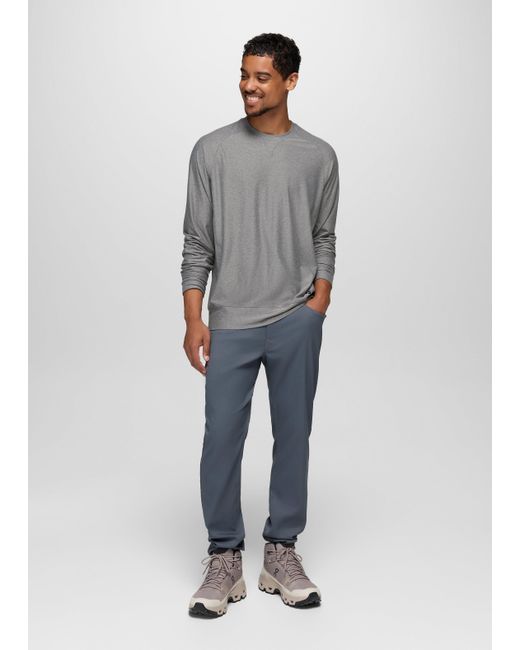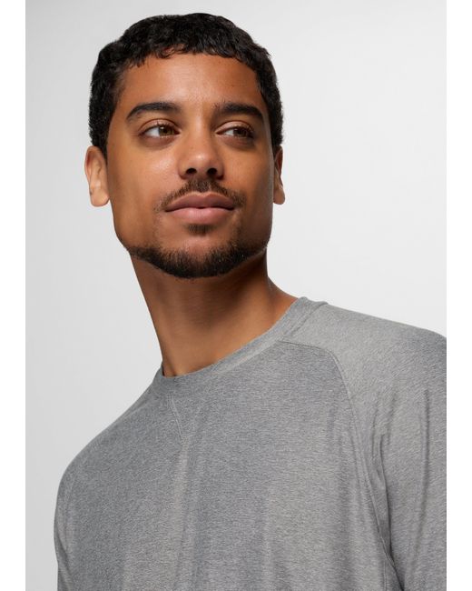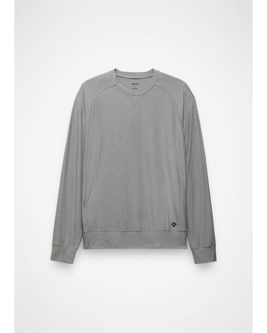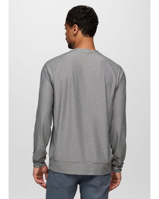 Soft and breathable crewneck sweatshirt in a stretchy performance knit for everyday wear. Soft and easy to wear, the Altitude Tracker Light Crew is a standard-fit men’s crewneck sweatshirt for go-anywhere comfort. Made from our breathable performance knit, it wicks away moisture while 4-way stretch moves with you from home to gym to airport. | Mens prAna Altitude Tracker Light Crew in Grey, Size Medium