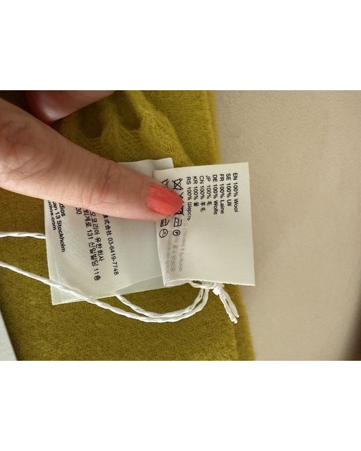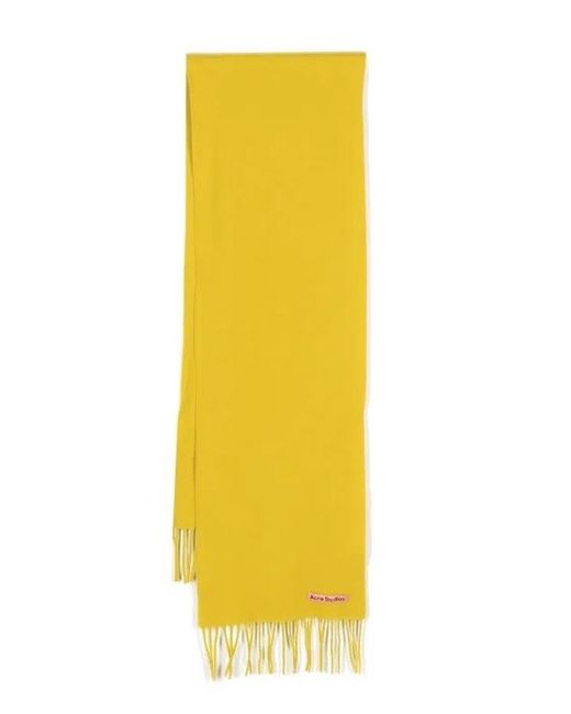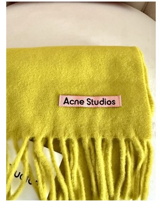 New and never used. Perfect condition. logo-patch wool scarf Made in Italy Highlights pistachio yellow wool logo patch to the side fringed edge rectangle shape wraparound style Composition Wool 100%