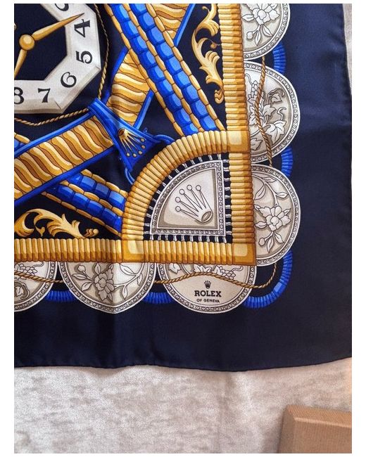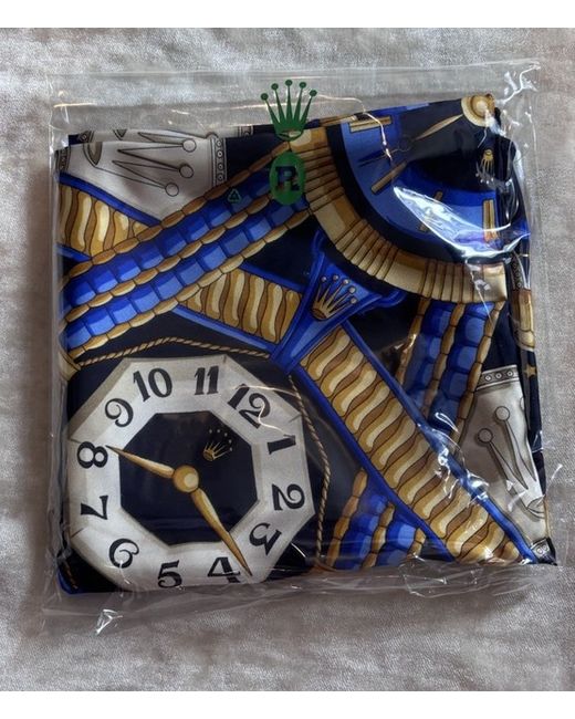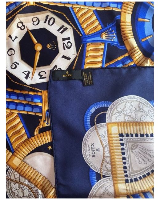 A Rolex Silk Multicolored Scarf With Original Box. 'Watch Faces & Rolex Logo'. Rolex Of Geneva. This Is A Oversized Silk Scarf.