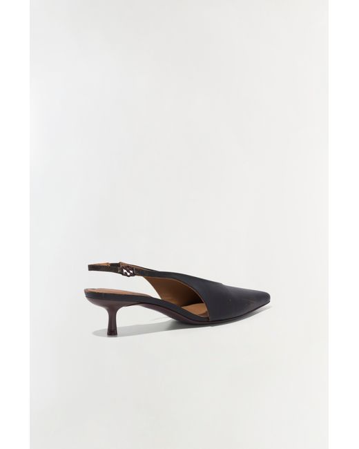 FALL 2025 WOMEN'S COLLECTION The Sylvie Slingback Kitten Heel in Distressed Chocolate This sophisticated slingback kitten heel features a pointed toe and streamlined silhouette, exuding understated elegance. SIMKHAI Women's Sylvie Slingback Kitten Heel in Distressed Chocolate, Size 36