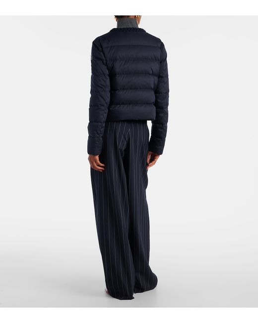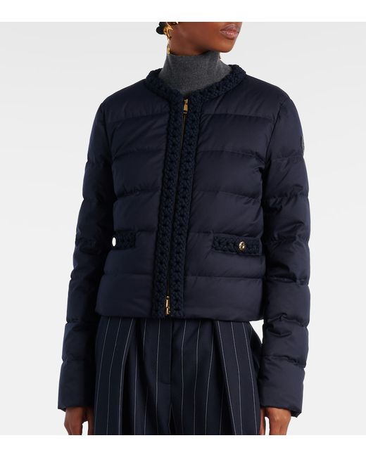 Material: 100% polyester. Care instructions: dry clean. Made in Romania. Designer color name: Blue. Item color: blue. Details: 100% calf leather. Lining: 100% polyester. Filling: 90% down, 10% goose feathers. Contains non-textile parts of animal origin. Closure: two-way zipped front. Pockets: buttoned pockets. Hardware color: gold.